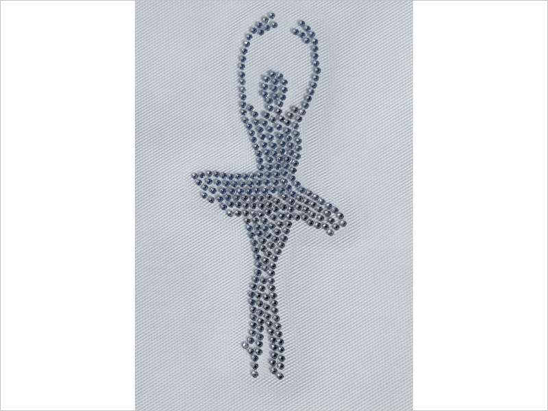 Motif composed of thermo-adhesive rhinestones for application on fabric with a press or iron.