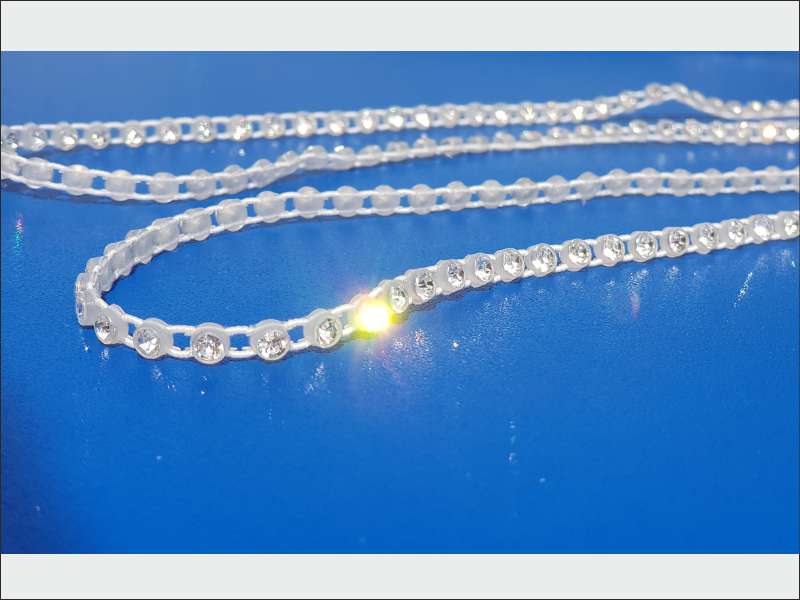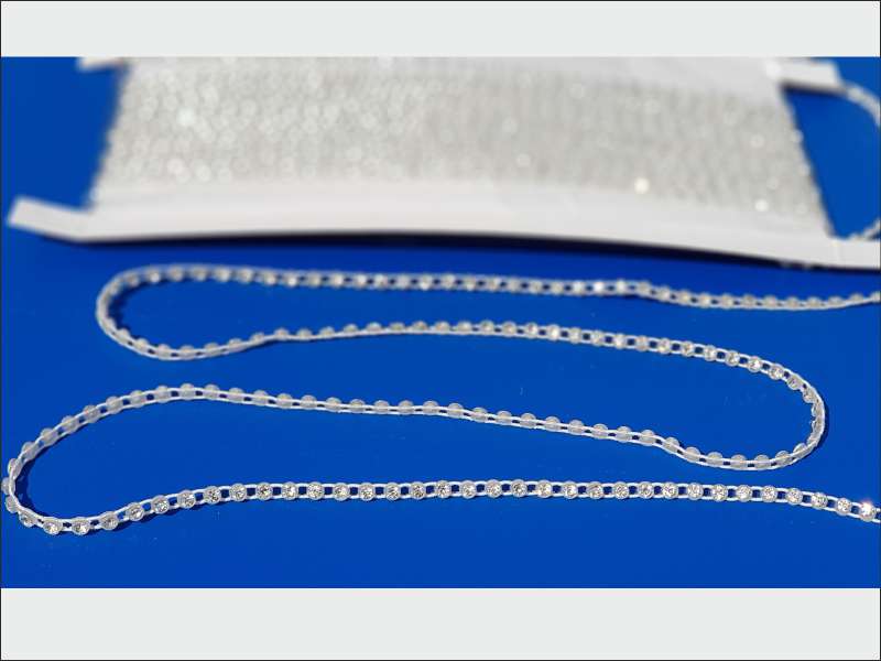 Fila di strass montati su supporti plastici collegati da filo elastico