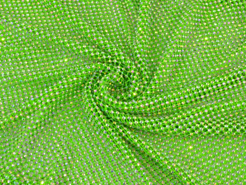 PANNELLO DI RETE ELASTICA FLUO GREEN CON STRASS SS16 CRYSTAL AB