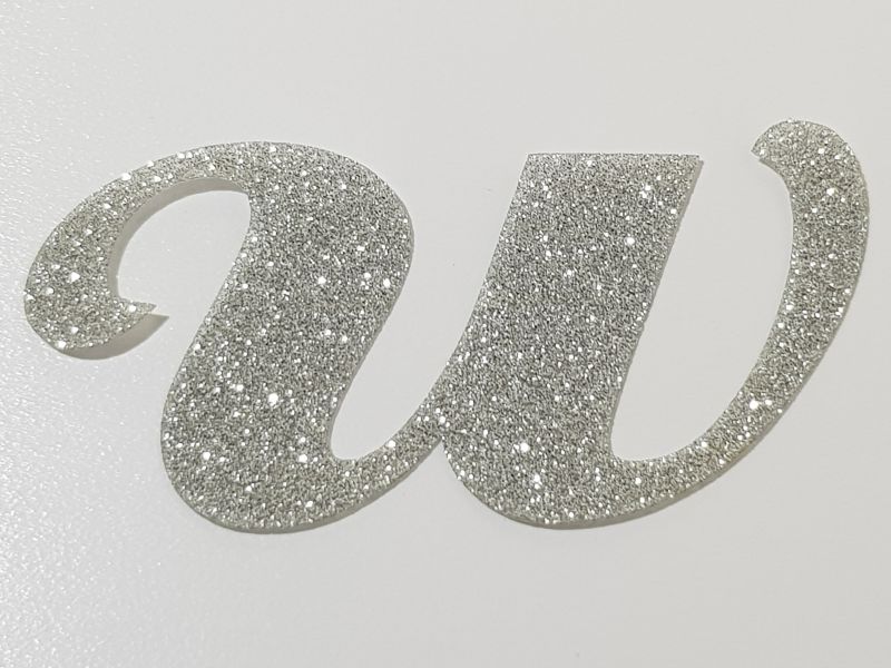 Lettera in materiale termoadesivo tecnico glitterato color ARGENTO