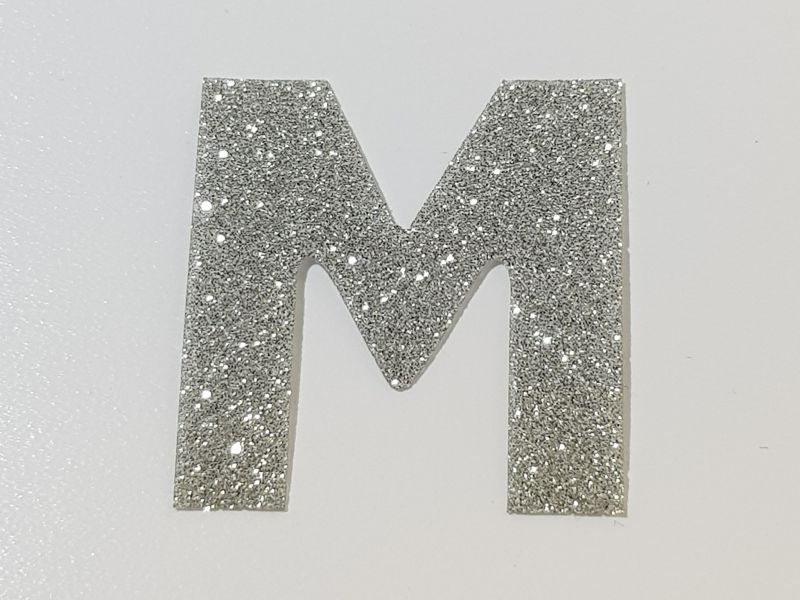 ELASTIC GLITTER LETTER M FONT 2, SILVER