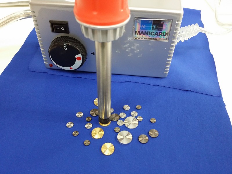 CONSENTE DI APPLICARE I MATERIALI DI GRANDI DIMENSIONI TIPO CABOCHON BORCHIE O PIETRE RISCALDANDO IL COLLANTE TERMOADESIVO DALLA PARTE INFERIORE.