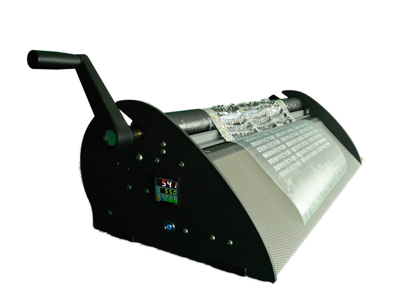 Il riscaldamento della macchina spellicolatrice permette al materiale di ammorbidirsi, mentre l’avanzamento manuale (tramite manovella) separa il film intagliato dal materiale di scarto, abbreviando notevolmente i tempi di spellicolamento.