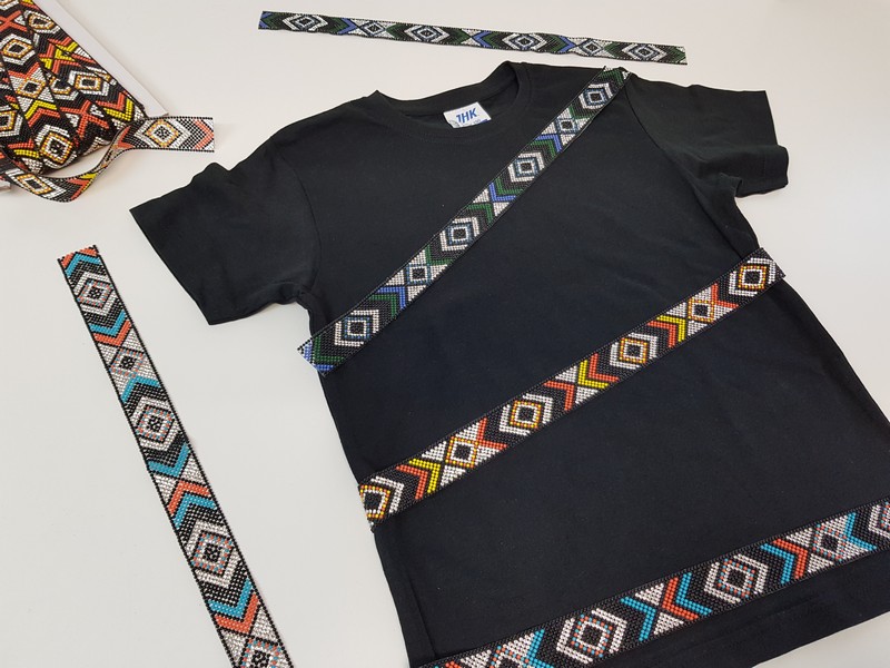 Applicazione di lettere glitterate elastiche con ferro da stiro su maglia.